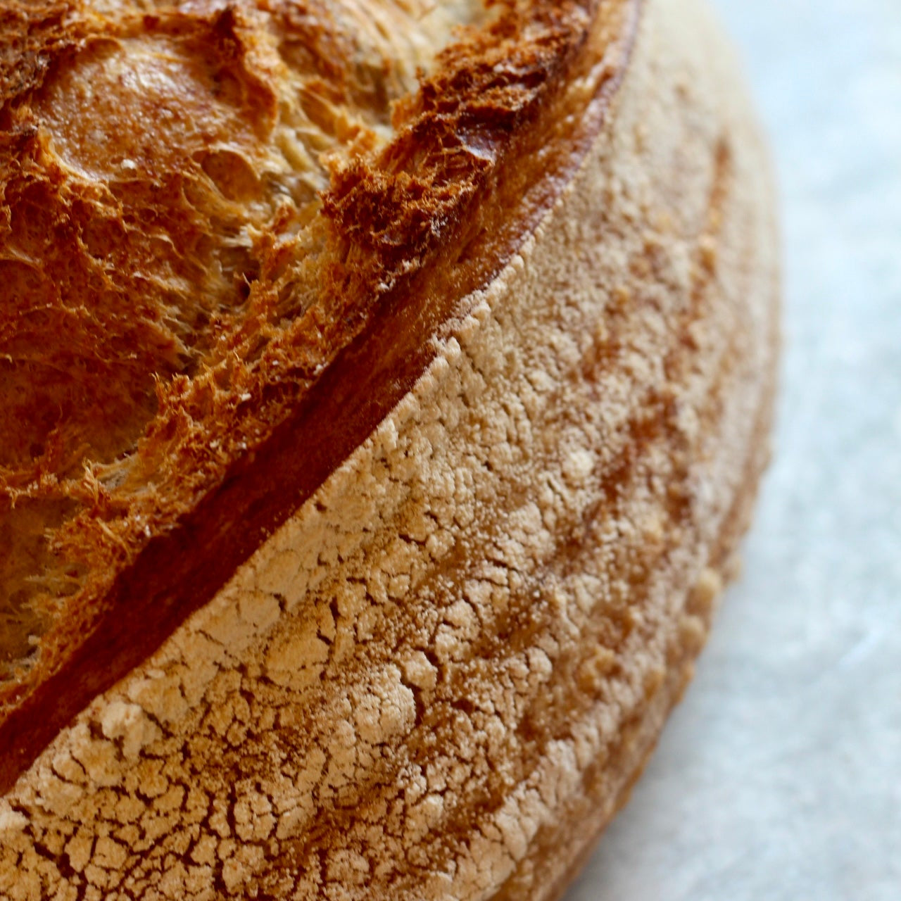 Baked fresh daily, each loaf has a beautifully crisp crust, an open, chewy crumb, and that signature sourdough tang. Made with just flour, water, and salt — no additives, no shortcuts.
