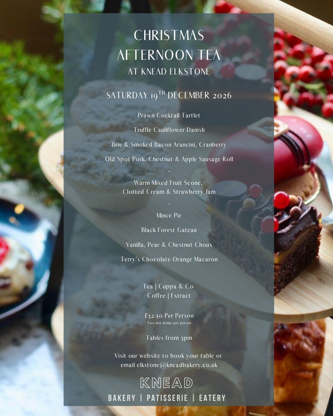 Join us at KNEAD Elkstone for our Christmas Afternoon Tea, featuring refined savoury bites, warm scones and handcrafted patisserie.