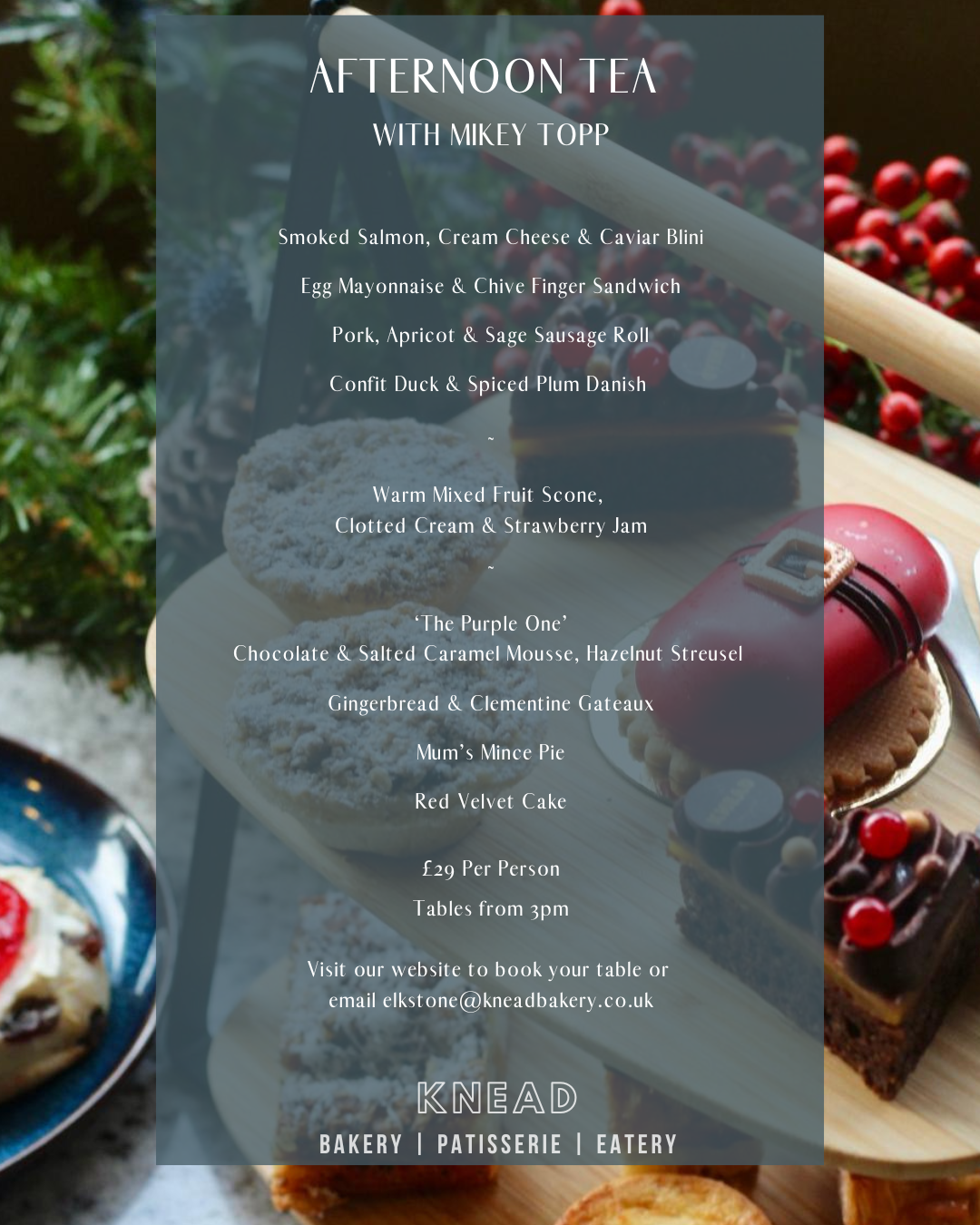 Join us at KNEAD Elkstone on Saturday 20th December, for an elevated take on a British classic. This special Christmas afternoon tea is handcrafted by pastry chef Mikey Topp, whose experience includes some of the region’s most acclaimed kitchens.